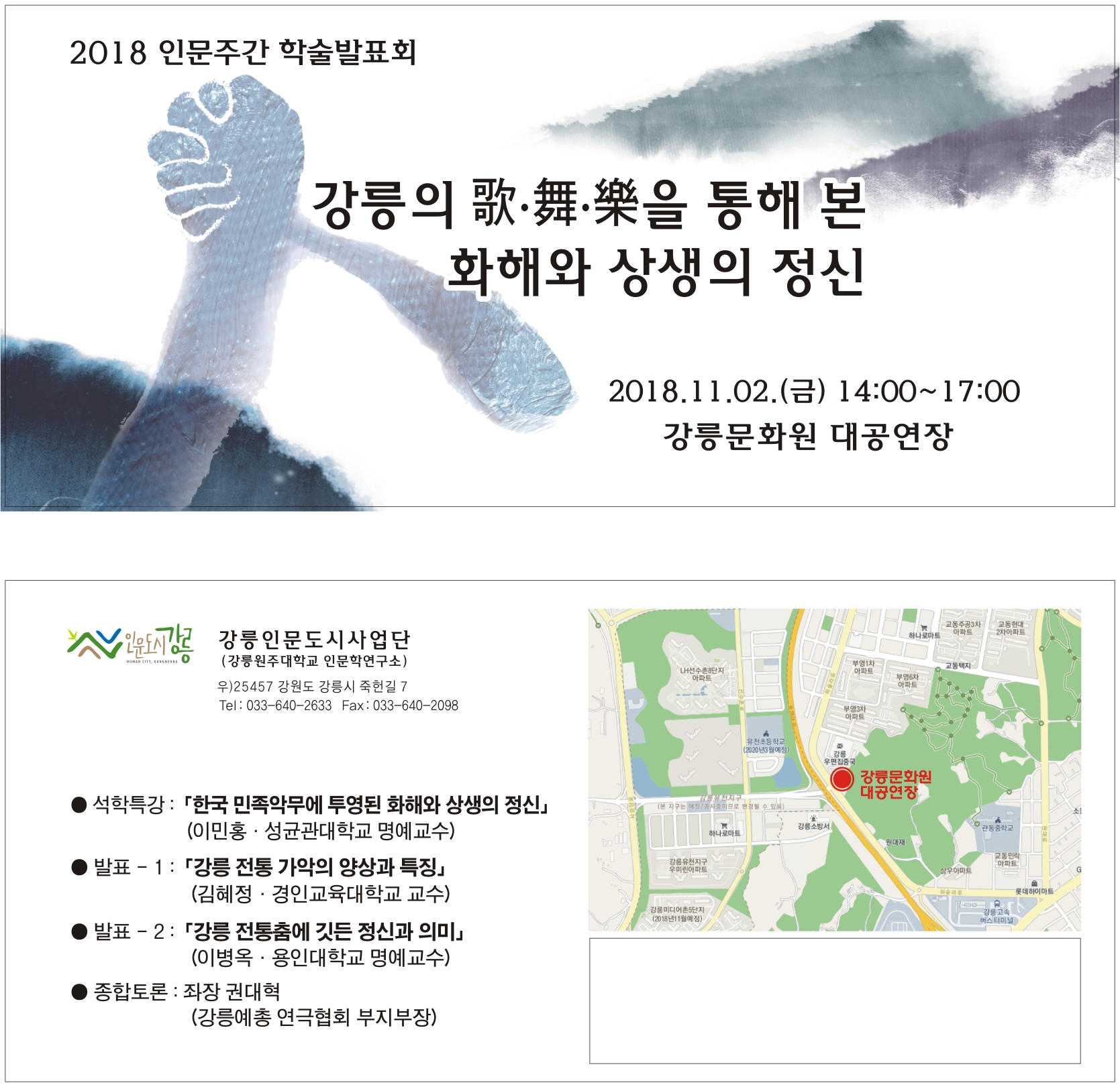오는 11월 2일(금)부터 11월 4일(일)까지 2018 인문도시 강릉 인문축제가 개최됩니다.